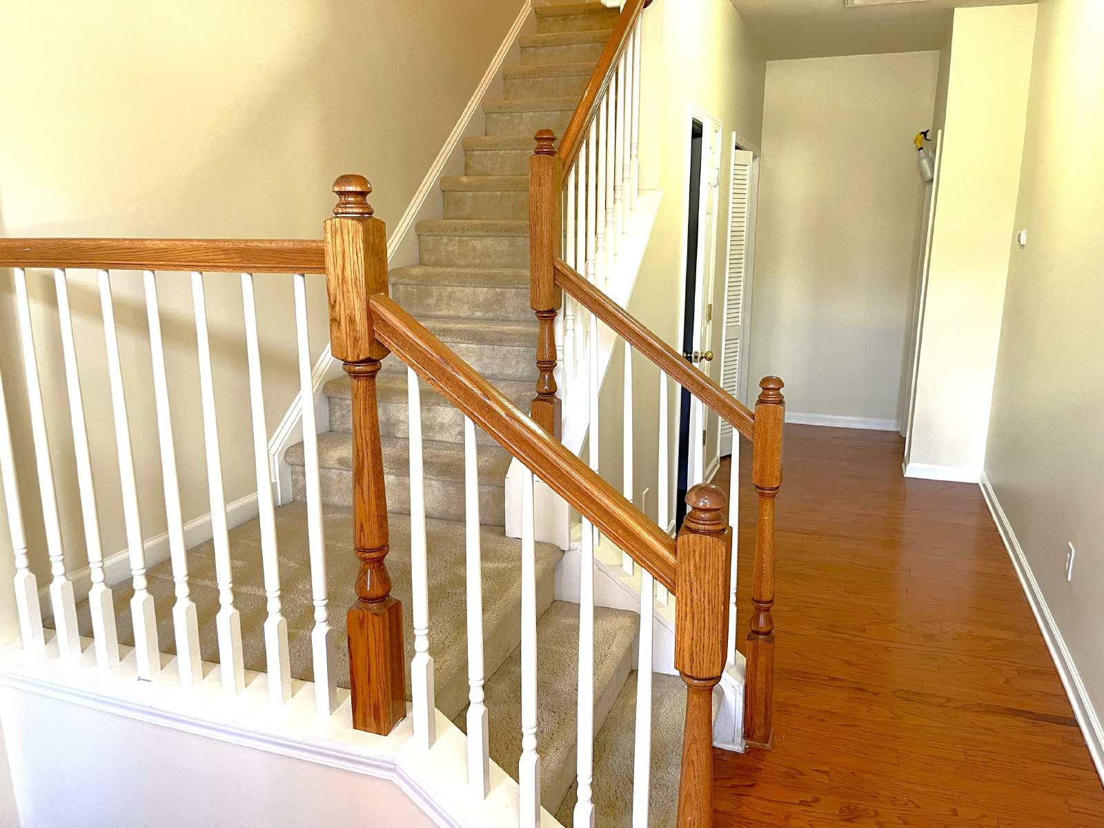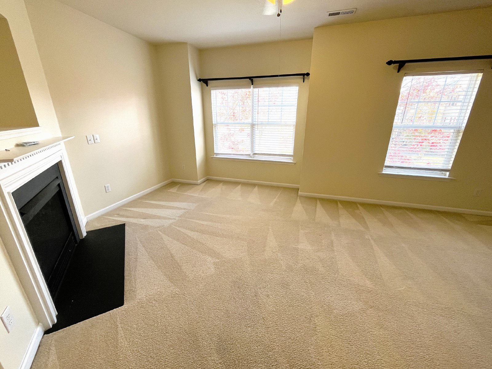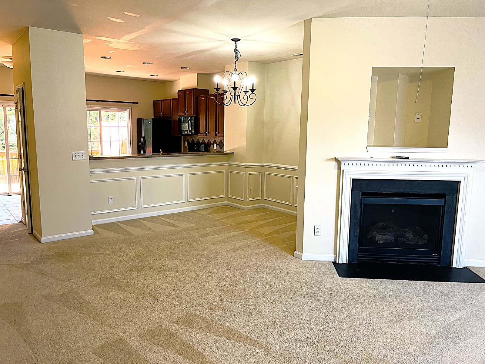 This spacious and freshly painted 4-bedroom, 3.5-bathroom home is filled with natural light and features a large deck overlooking peaceful woods. The first floor includes a bedroom that can be used as an office, along with a full bath. The open living room has a cozy fireplace, and the master bedroom includes a walk-in closet. Enjoy access to the community pool, and the HOA takes care of lawn maintenance. This home also comes with a washer, dryer, and refrigerator. Located near Research Triangle Park, Hwy 540, and I-40.